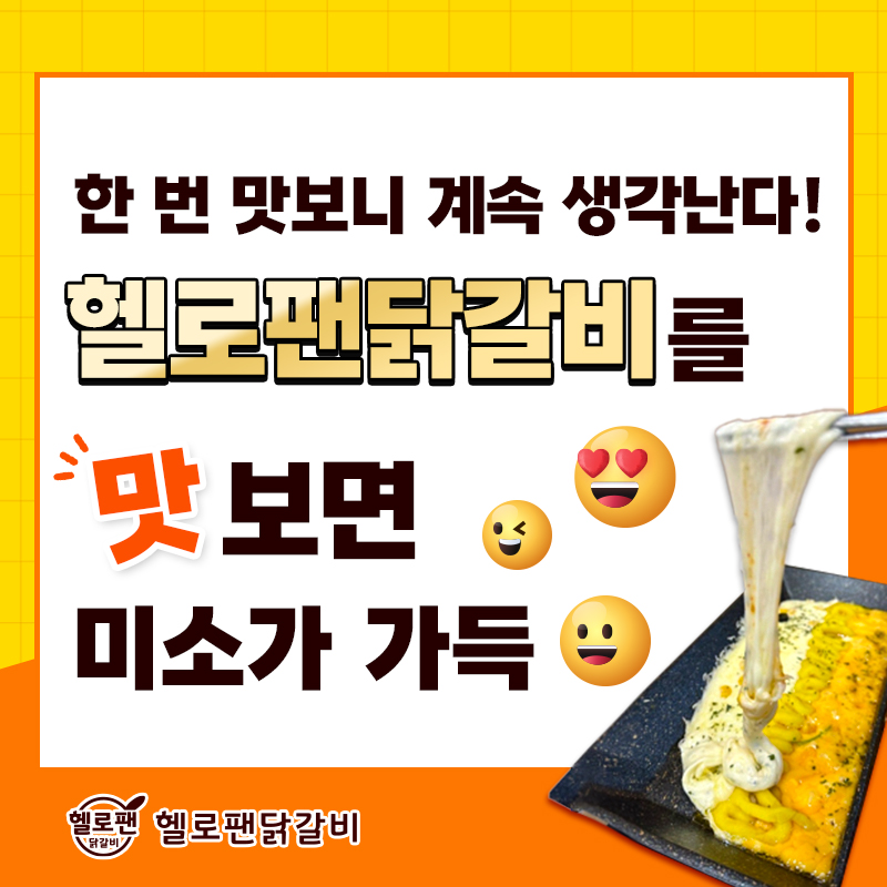 한 번 맛보니 계속 생각난다!헬로팬닭갈비를 맛보면미소가 가득- 한 번 맛보니 계속 생각난다는평이 ..
